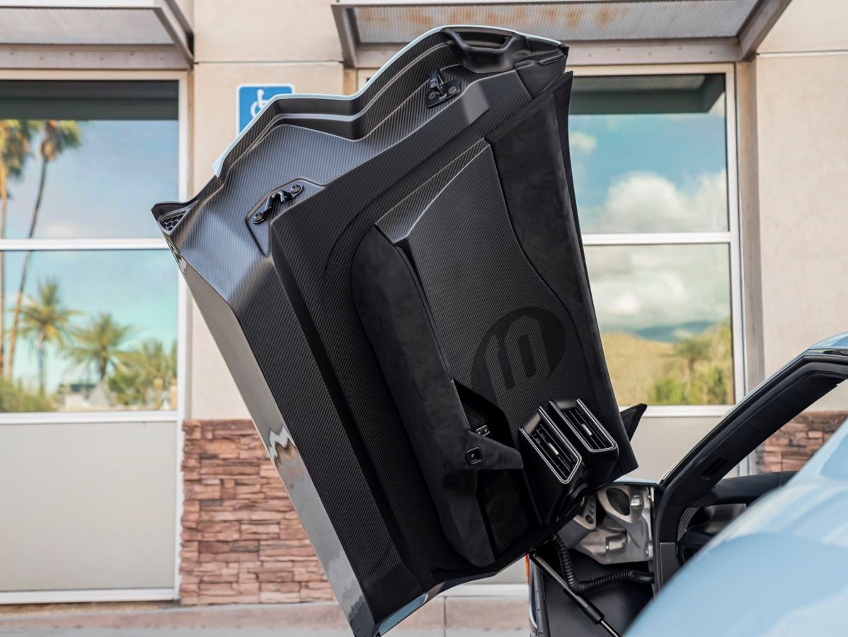The Ford GTs unmistakable silhouette is a seamless blend of aerodynamics and artistry. Its Heritage Blue finish celebrates Fords historic racing pedigree, while the sculpted bodywork and flying buttresses are engineered for maximum airflow and performance. Every line and contour serves a purpose, resulting in a design that is as functional as it is breathtaking.