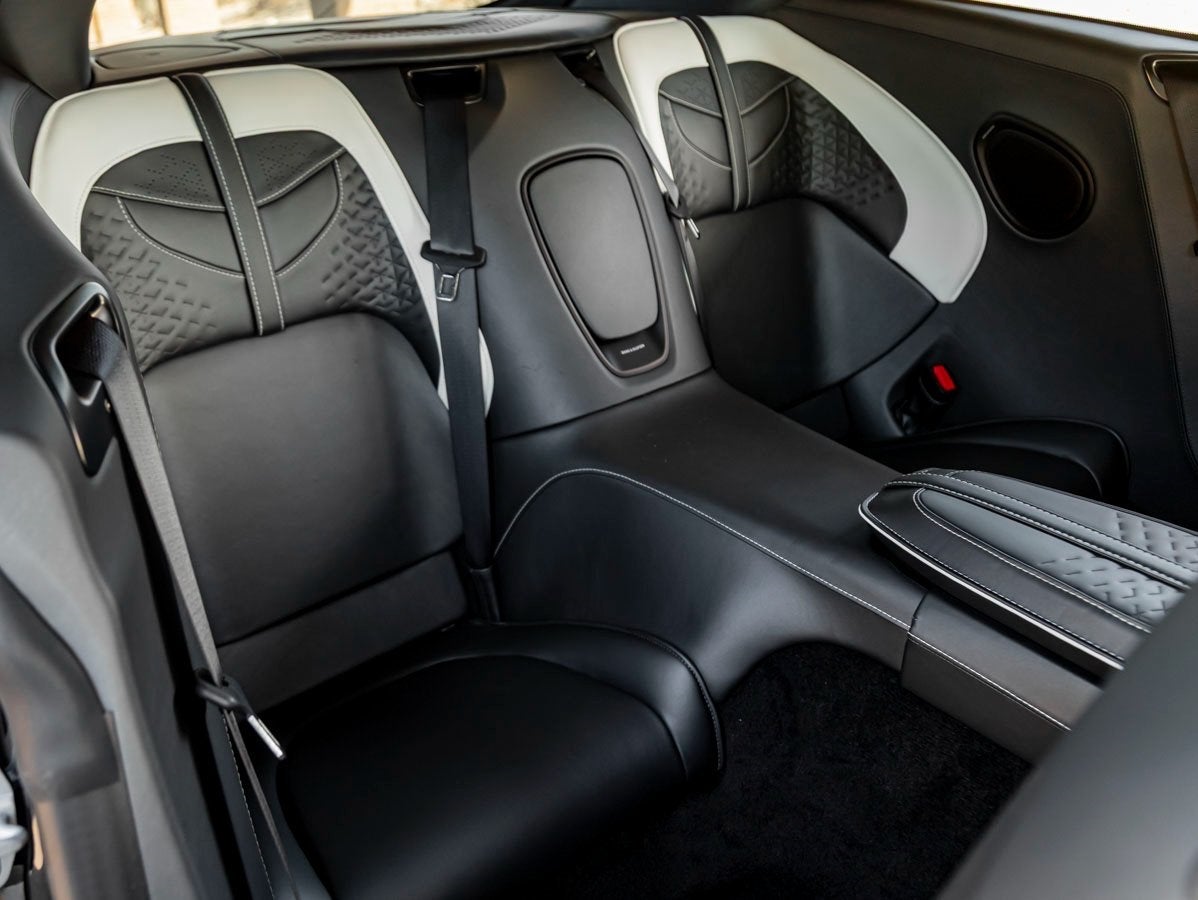 Inside, the Inspire Duotone cabin is a sanctuary of refinement, trimmed in Q Special leather with contrast stitching and welt for a bespoke aesthetic. Contemporary carpet color and rich Sports Carbon Fiber & Leather detailing elevate the ambiance, while the 2x2 carbon fiber twill trim inlay adds a precision-crafted element. Every surface speaks to the meticulous craftsmanship that defines Aston Martins heritage.