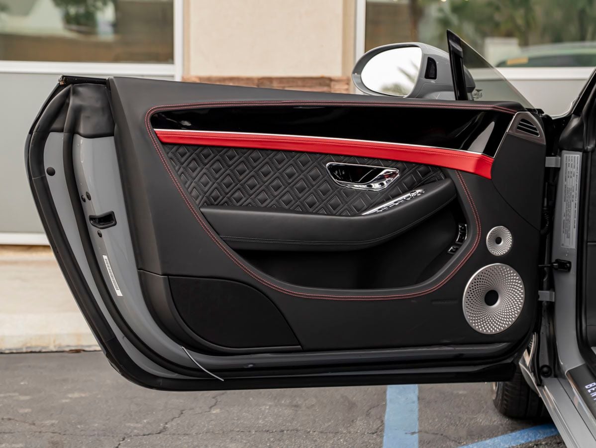 The Continental GT S V8 commands attention with its athletic stance and sculpted lines, embodying Bentleys contemporary design language. The Cambrian Grey finish accentuates the coupes flowing proportions, while the bold 22 10 Spoke Sports Wheels painted black reinforce its performance-focused presence. Subtle yet distinctive details such as the self-leveling wheel badges by Mulliner and LED welcome lamps add an unmistakable touch of exclusivity and craftsmanship.