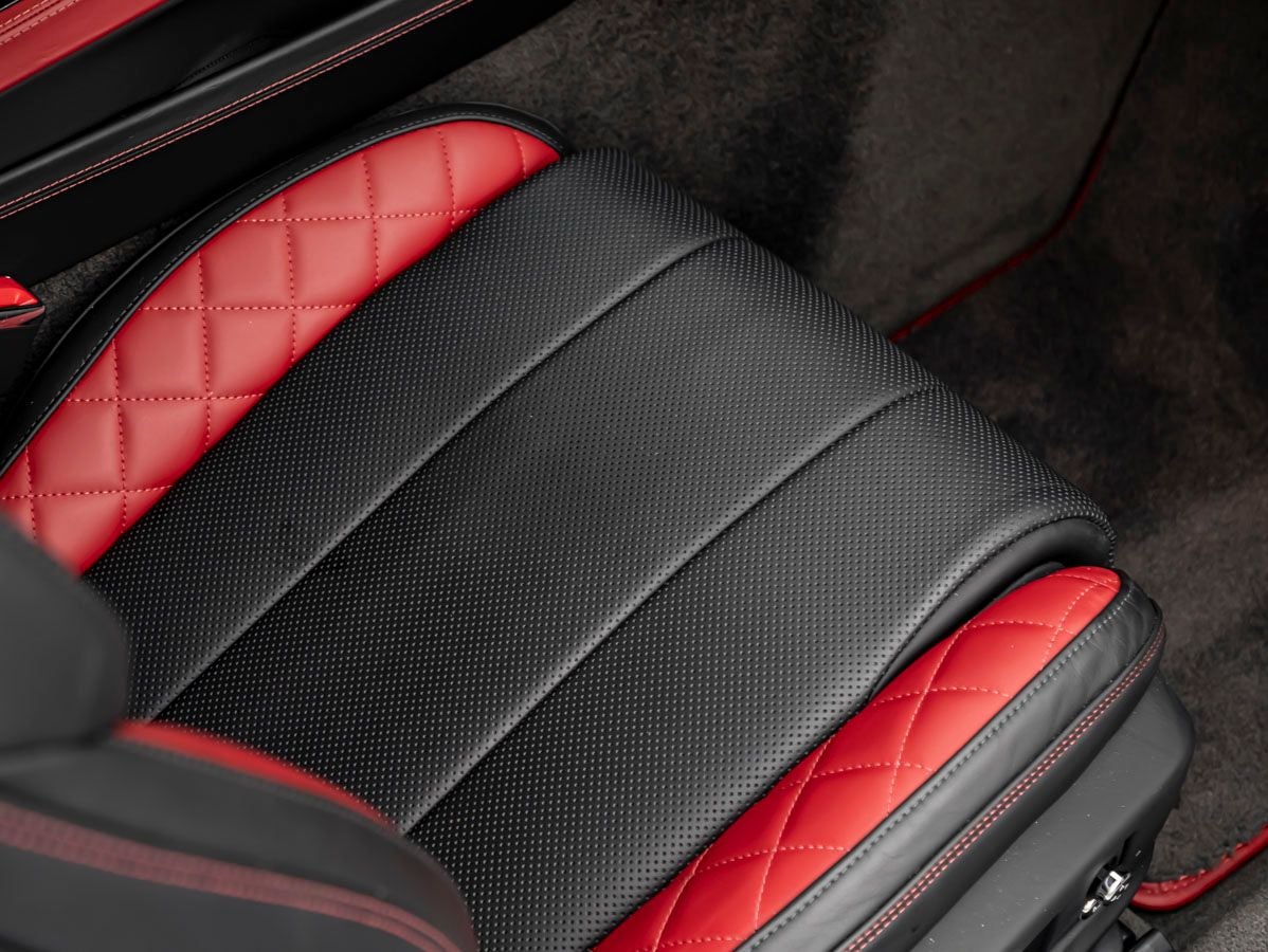 Step inside to discover a meticulously crafted cabin that surrounds occupants in luxury and innovation. The Black and Hotspur leather interior is enhanced by the Leather Specification with Diamond Quilting, contrast stitching, and contrast binding to carpet overmats, showcasing Bentleys renowned attention to detail. Comfort and ambiance are elevated through the Front Seat Comfort Specification, heated, indented steering wheel, and immersive Mood Lighting Specification, creating an environment that is both indulgent and driver-focused.