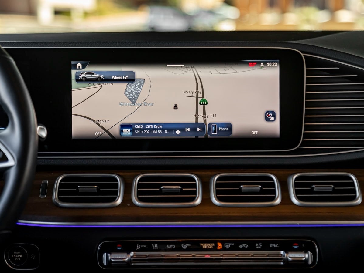 The GLE 350 features a confident, modern design enhanced by the AMG Line Exterior Package, including sport styling elements and a sport brake system. Riding on striking 21 AMG Line multi-spoke wheels, this SUV is further equipped with a panorama sunroof, trailer hitch, increased towing capacity, wheel locking bolts, and a load sill protector for added practicality.